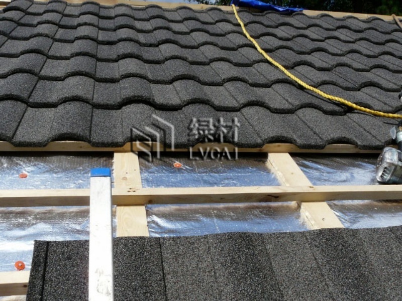 金属瓦又被称为彩石金属瓦,金属瓦的材质是镀铝锌钢板,用镀铝锌钢板作为基材加上丙烯酸树脂作为粘合剂,搭配十余种颜色彩砂供客户选择 。